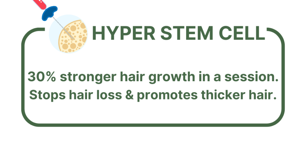 “Hyper Stem cell treatment” is a revolutionary approach that involves injecting a specialized mixture of the patient’s own adipose tissue and enriched stem cells into the hairless area. Treatment content is only the pure and very dense form of Stem Cells that accelerate natural hair growth, stop excessive hair loss with long lasting effectiveness.